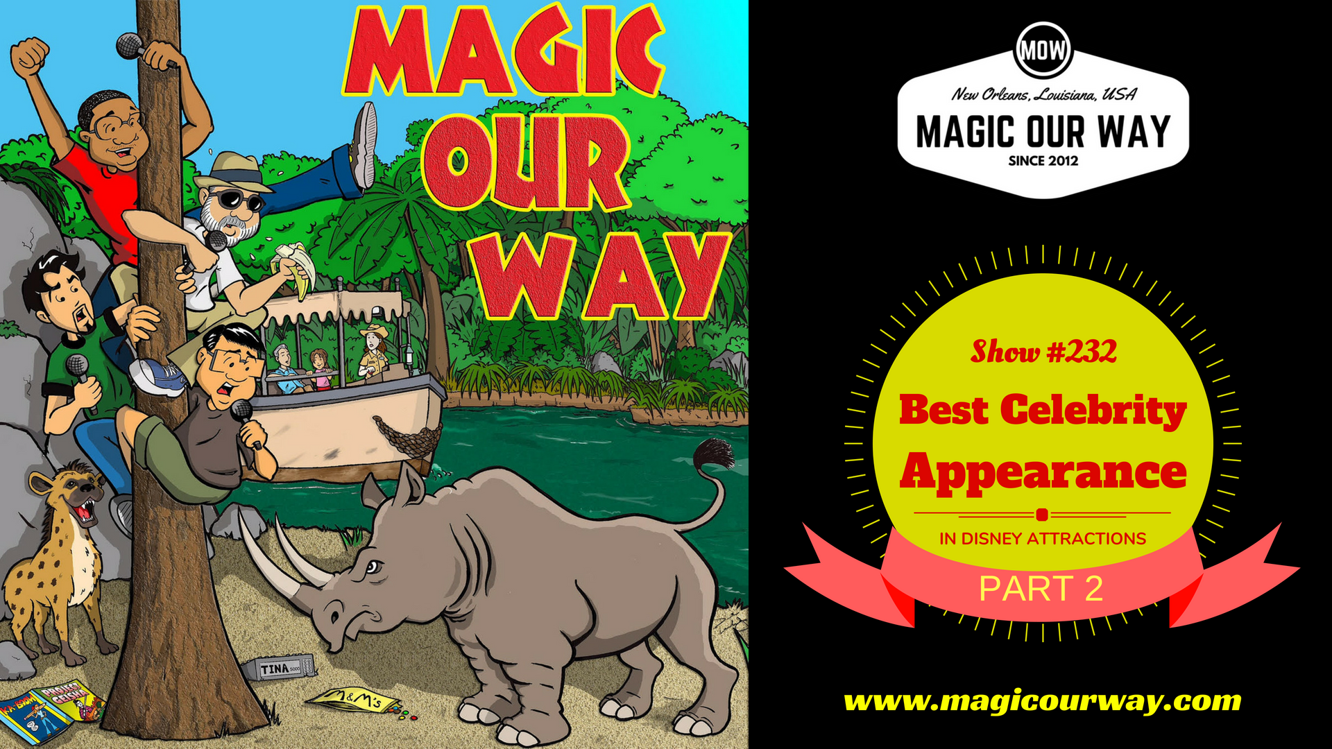 On this episode, we continue our search for the best celebrity appearance in a Disney attraction. Danny compiled a list of 16 attractions that utilize celebrities both visually and audibly. We present this show in two parts; be sure to check out part 1 from last week, MOW #231.