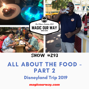 We continue our discussion on our 2019 Disneyland Trip. For this episode, it is All About the Food. We discuss our experience at Carthay Circle Goofy’s Kitchen, and much, much more! This is part 2 of 2. Check out Part 1 on MOW #292.